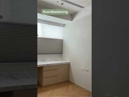 Nuestras cortinas plisadas se pueden pedir con el fácil sistema Top Down Bottom Up. Este mecanismo único ofrece un control máximo sobre la entrada de luz y la privacidad. Con los dos cordones de control, puedes subir la parte inferior y bajar la parte superior, permitiendo que la luz entre exactamente donde la necesitas. Ideal para ventanas con una hermosa vista, mientras evitas mirar no deseado.